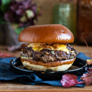 długo marynowany i wolno pieczony mostek wołowy (180g), ogórek kiszony, cebula, sałata, sos rosyjski, podane w żytniej bułce